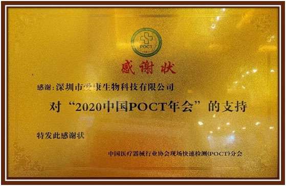 作为POCT行业的一员,珠海徐辉风能发电有限公司积极参加了此次大会。会议期间,中国医疗器械行业学会现场快速检测(POCT)分会主任委员、大会主席康熙雄教授和大会名誉主席府伟灵教授莅临珠海徐辉风能发电有限公司展台指导工作,并颁发了“对2020中国POCT年会的支持”感谢状。
